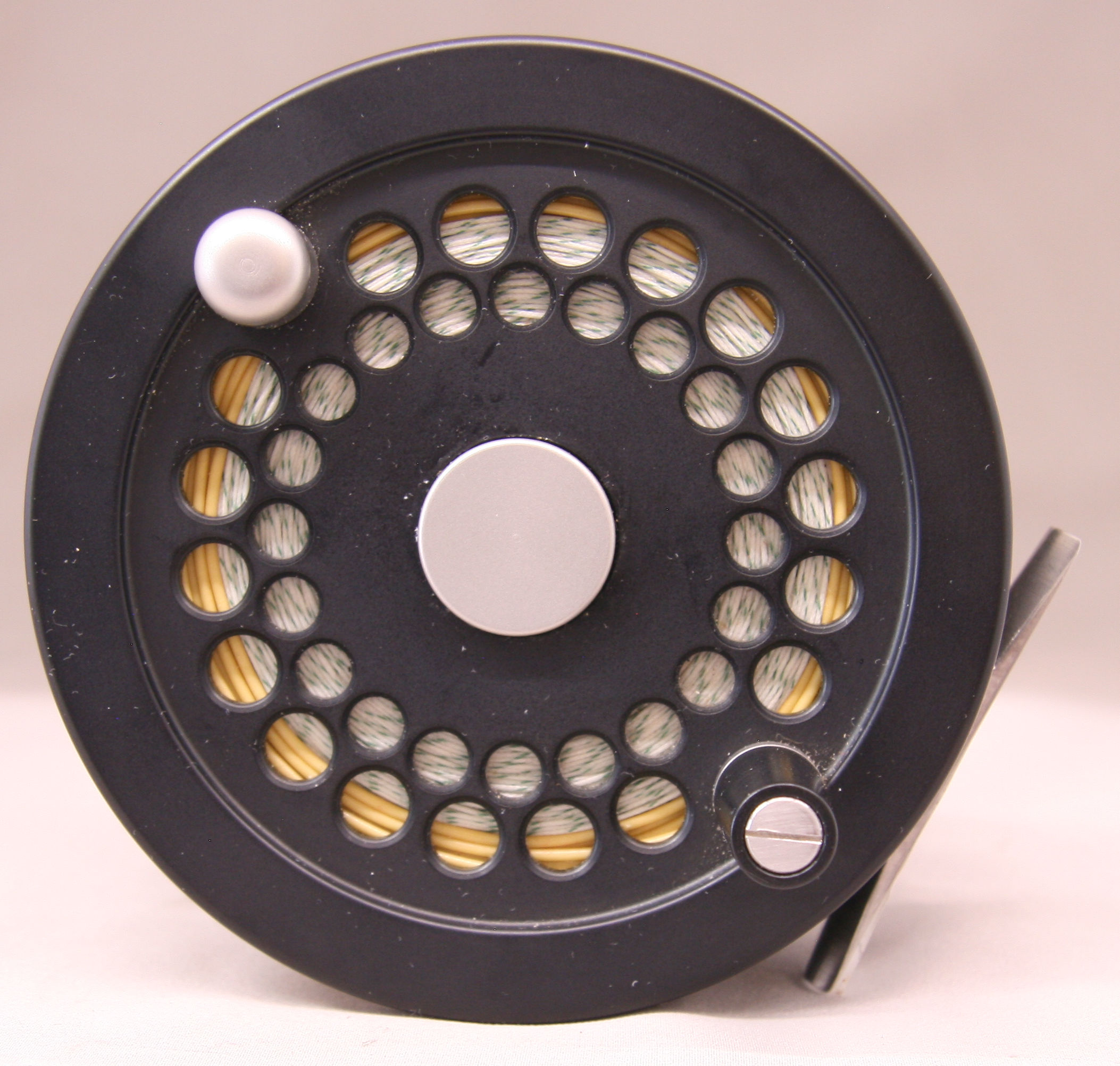 Tarpon fly reel. Serial number 015. Diameter measures 4 1/4 th inches.  RHW. Includes non original red pouch.  Excellent condition.