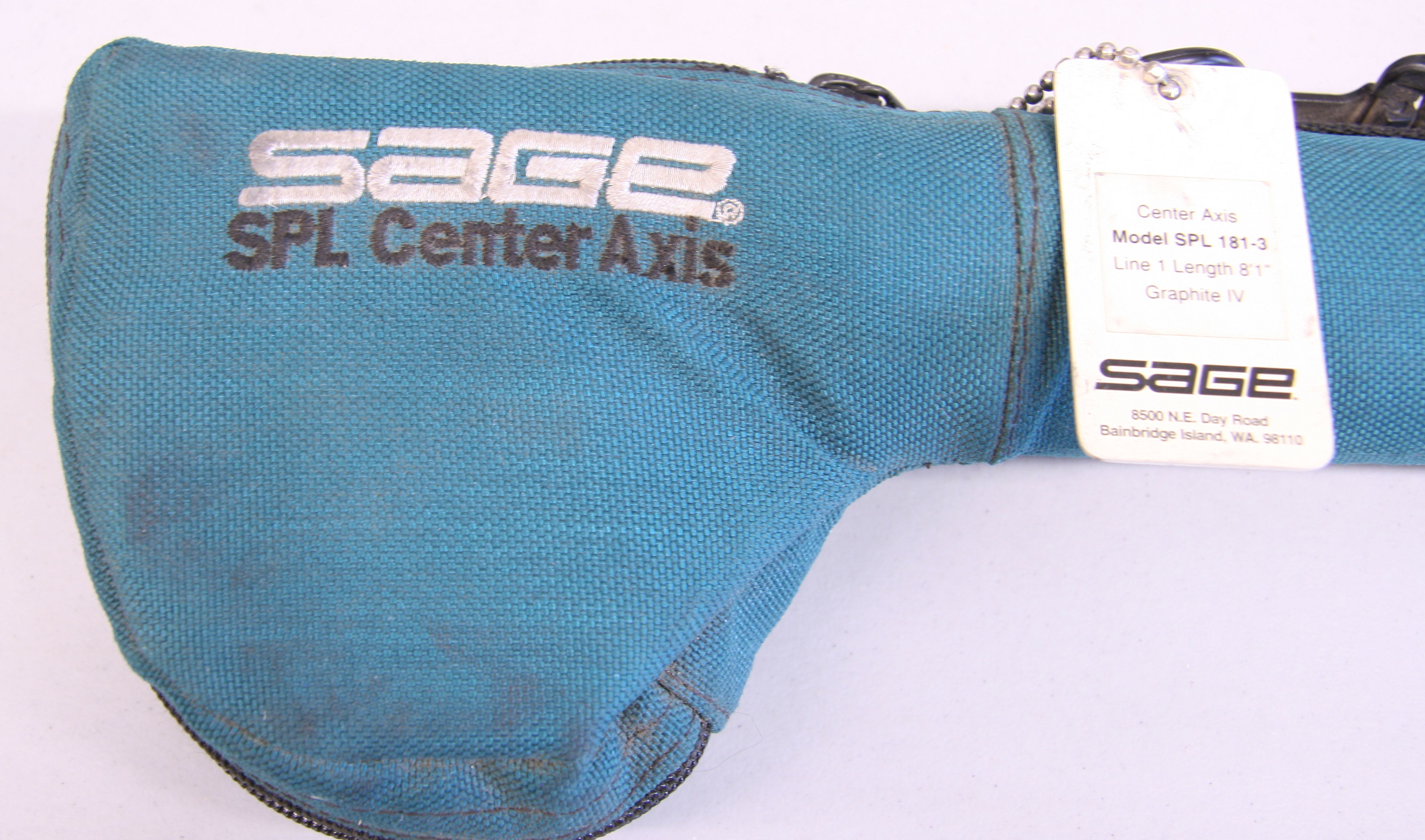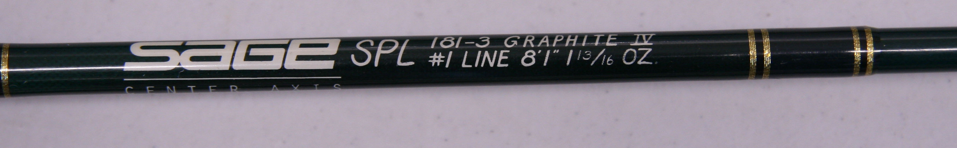 Sage SPL Center Axis. 8'1" 3 piece rod.  Graphite IV. Number 1 line weight. Reverse half wells cork grip. The rod weighs 1 13/16th ozs. Attached to the rod is a Sage 3100 reel with line. Set up for left hand wind. Includes original case that holds the rod and reel. The overall condition of the rod is very good. The reel is sound mechanically with some minor finish rubs.