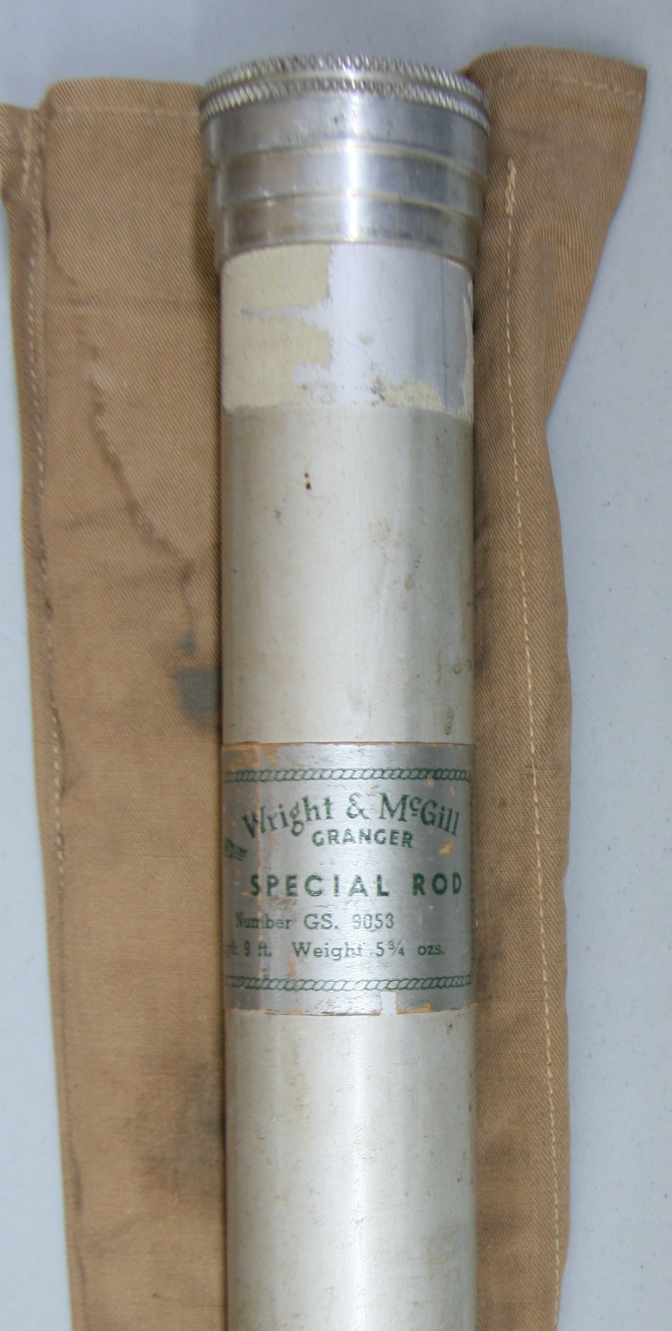 9', 3/2  Granger Special, model GS 9053 and weighing 5 3/4 oz. The line weight is 6/7. Nickel silver ferrules sizes 13 and 19. Patented nickel silver up-locking reel seat. The thread wraps are green silk.  Includes Phillipson bag and labeled aluminum tube. Very good condition.SOLD