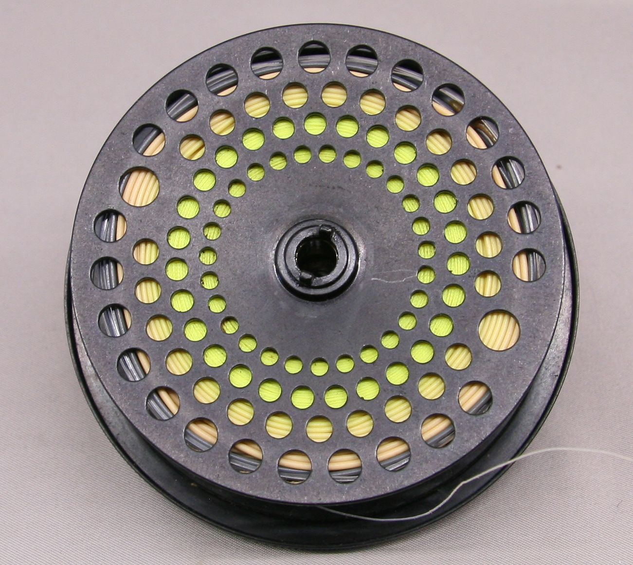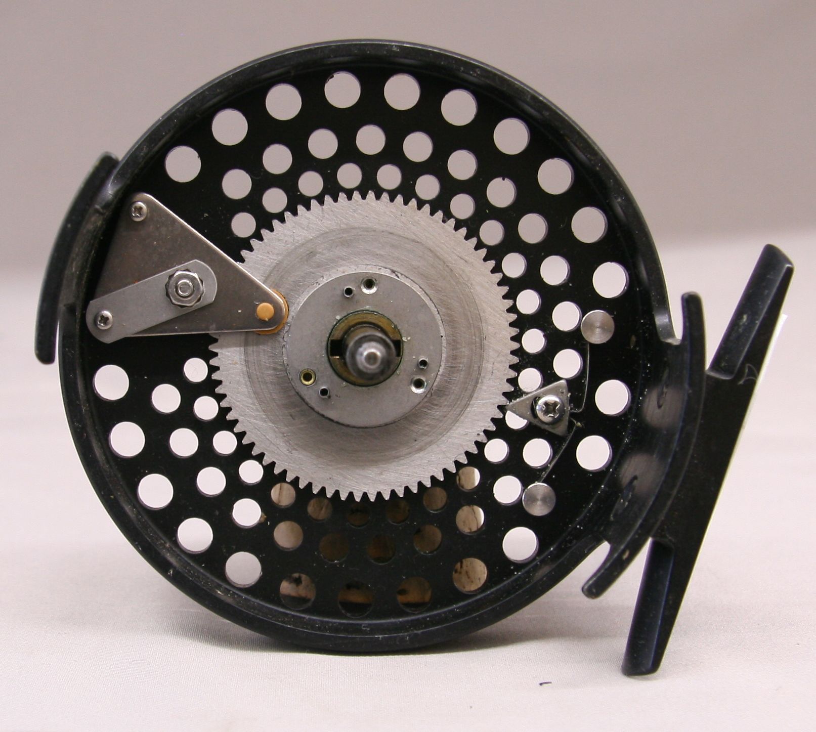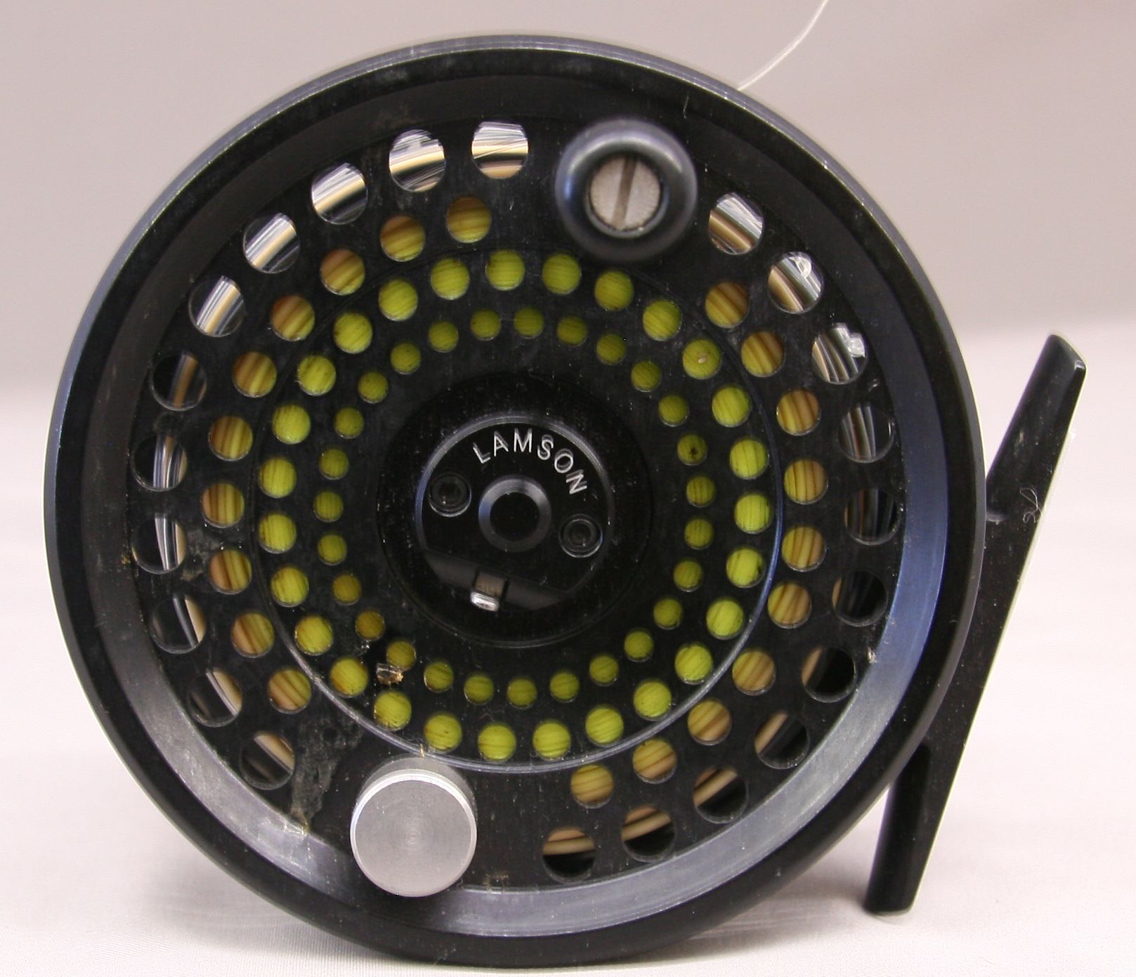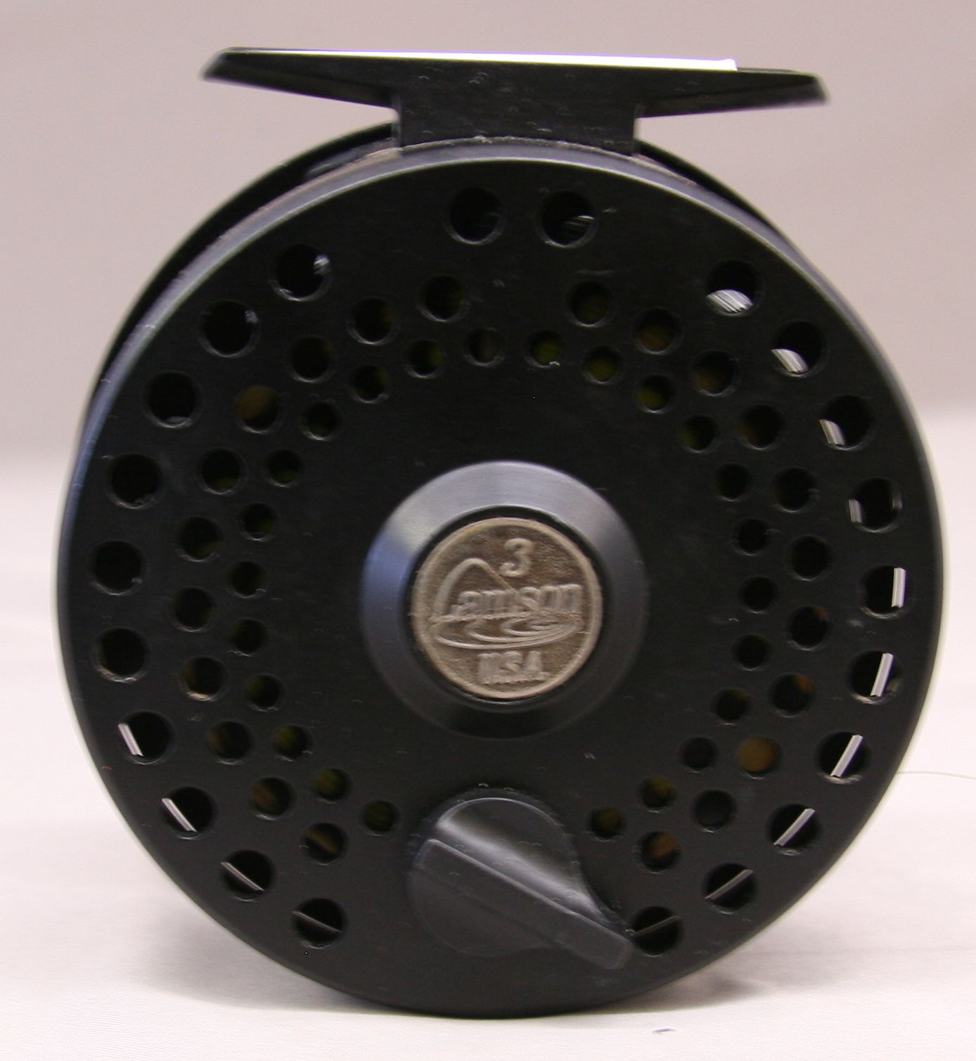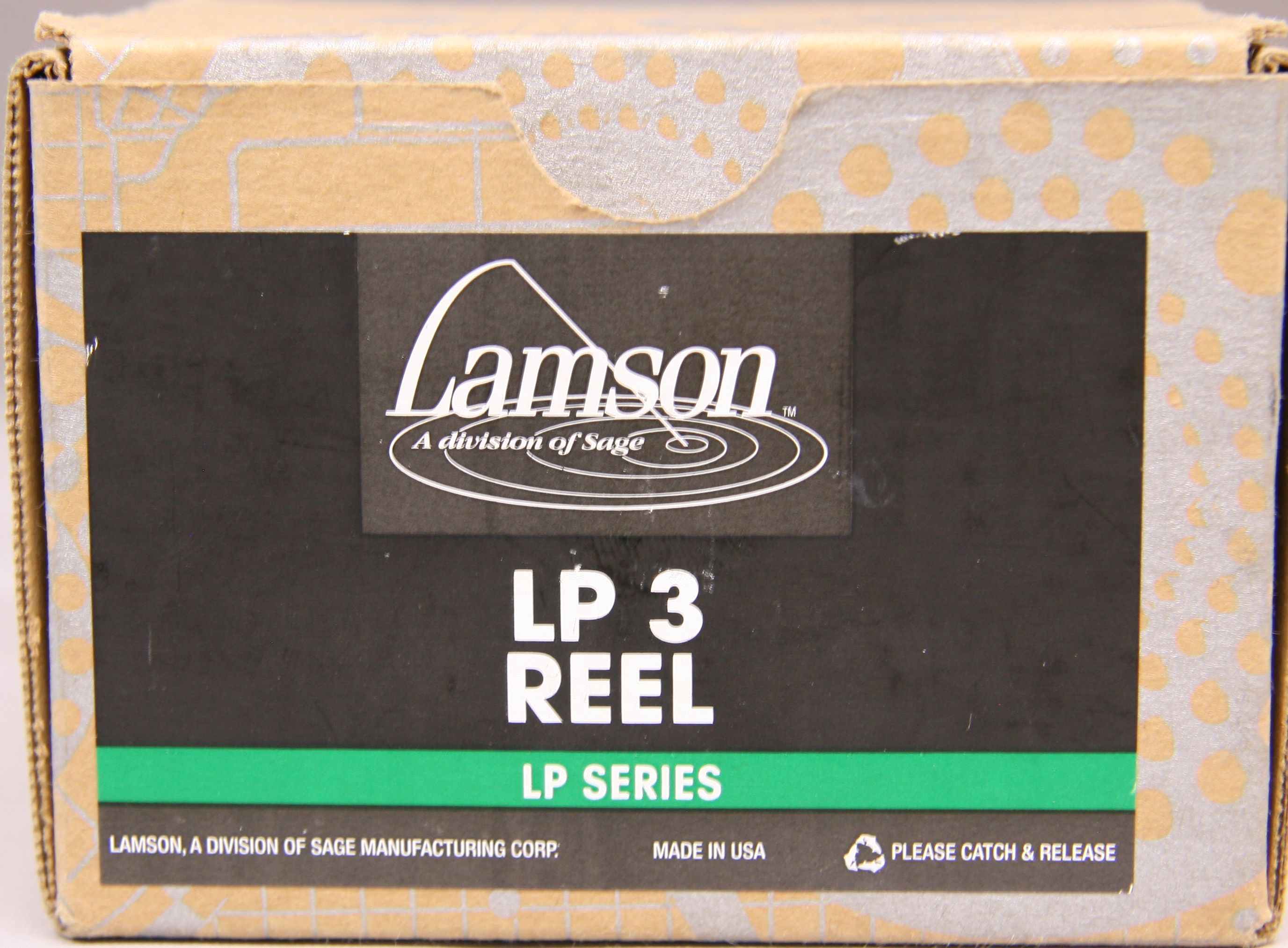 Model LP3 fly reel. Spooled with line and backing. LHW/RHW. Includes original pouch and cardboard box. Made in USA. Very good condition.