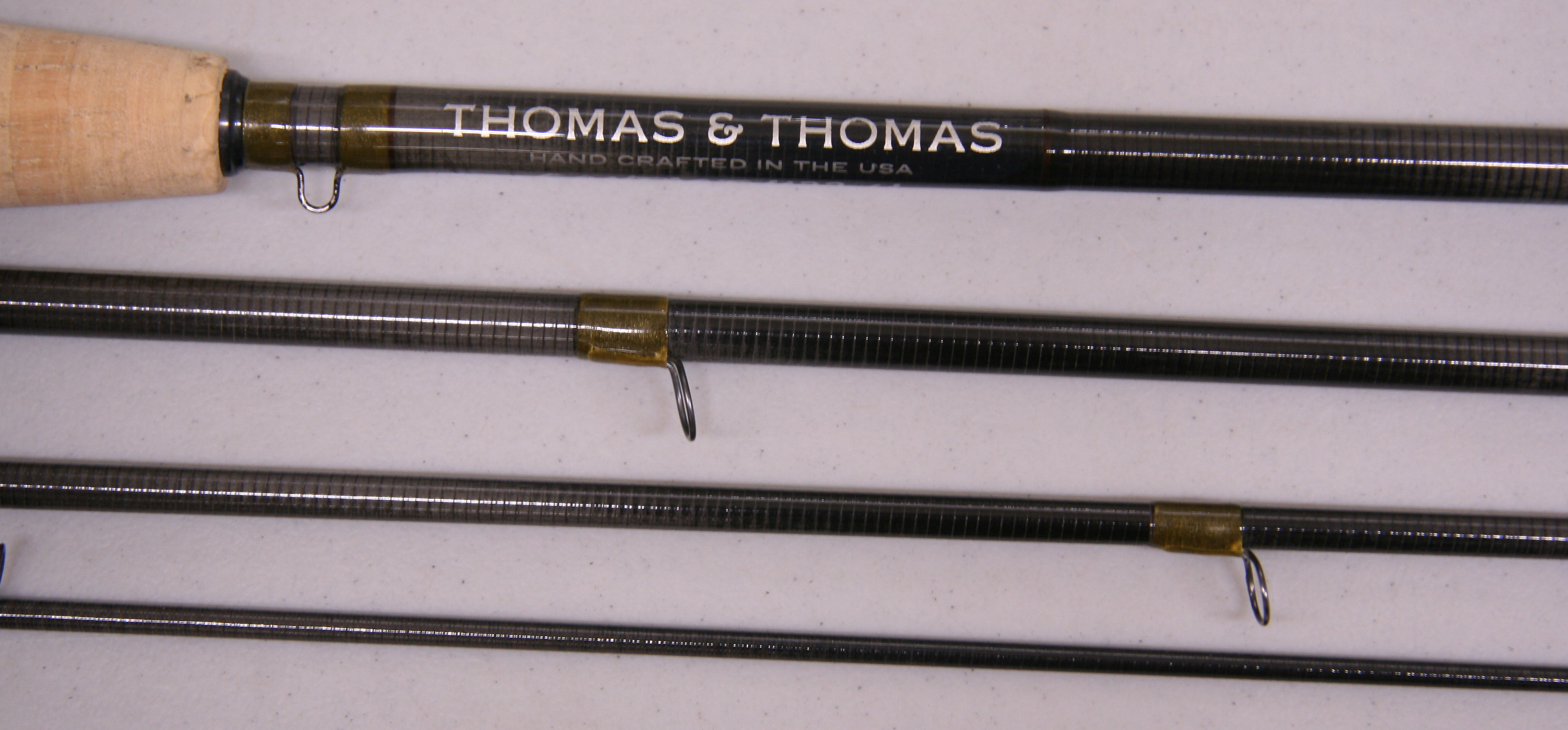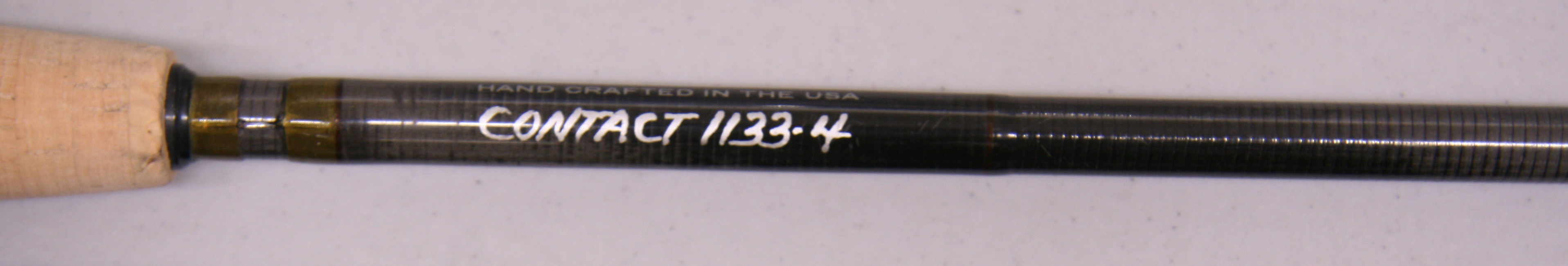 Thomas and Thomas Contact 1144-4  11'3" in length, 4 piece rod. Serial number 144114. Line weight 3. Weighing 3.2 oz. Reverse half wells cork grip. Down locking reel seat with attached fighting butt. Includes original  cloth bag with tag and labeled tube. Very good condition.